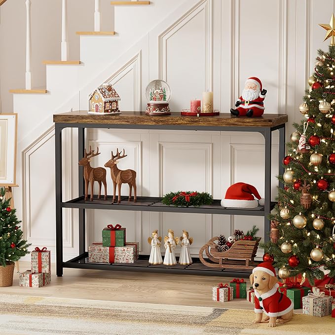 - 3-Tier Storage Space: This narrow console table with heavy-duty tabletop and 2 tier mesh shelves, providing ample storage for decor items, vases, frames, keys, and more. This organized storage keeps entryways tidy and visually appealing