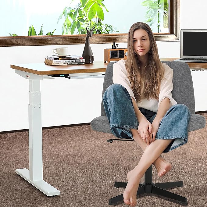 FDW Criss Cross Chair Armless Cross Legged Office Desk Chair Adjustable Swivel Ergonomic Gaming Chair No Wheels Backrest with Wide Seat Native Sponge Computer Task Vanity Chair for Home Office,Grey