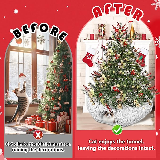 - Interactive Fun: The multi-functional design allows your pet to explore, chase, hunt, and play hide-and-seek freely in the cat play tunnel, and the hanging fur cat toy with balls in a circle at the exit add extra interactive fun, this cat tunnel will be your pet's dream playmate