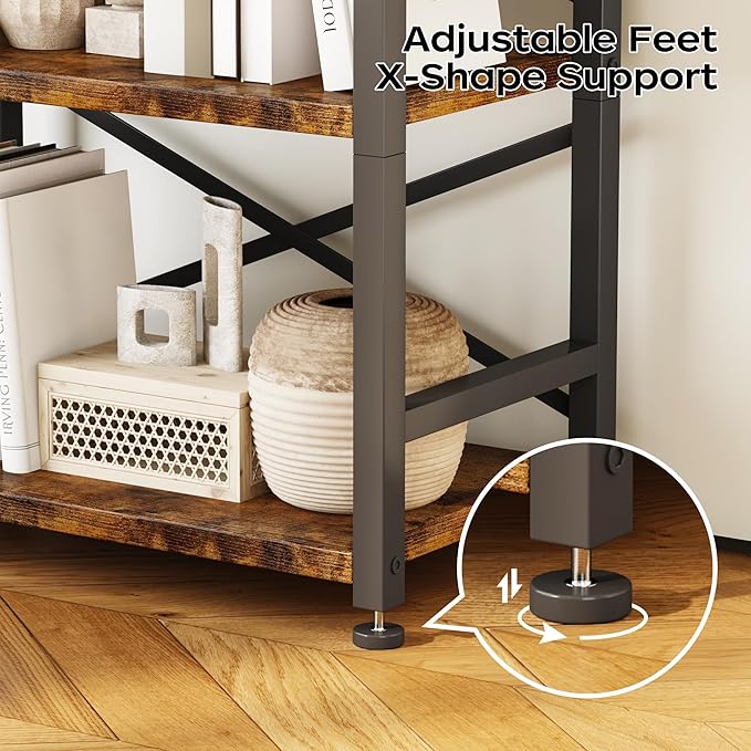 - 【Versatile Bookcase Shelf】The adjustable feet at the bottom are designed to make this industrial bookshelf suitable for different conditions of uneven floors.You can put it in your living room, study room, bedroom, and office to meet your various storage needs and greatly save your space and organizing time.This bookcase is compact and lightweight without occupy much space,you can use it at anywhere you need to better organize your messy items.