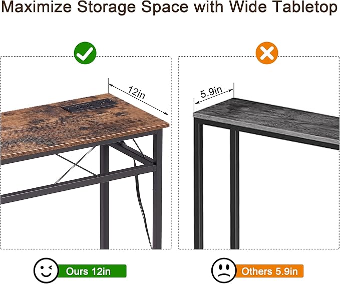 - Couch Table with Charging Station: Comes with 2 outlets, 2 USB ports and an extra long 9.8-foot power cord, this console table can meet your daily charging needs for mobile phones, laptops, lamps and other electronic devices, helping you stay away from low battery worries.