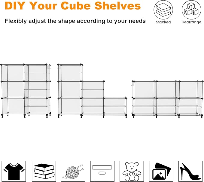 - Multi-use Storage: 6 cube closet Organizer storage shelf provide adequate space to organize and free up closet space, you can configure them to fit in your closet, bedroom, kids room, office; works well to organize clothes, toys, books, bins, bag, shoes, craftwork, yarn, pillows. Great way to keep things organized