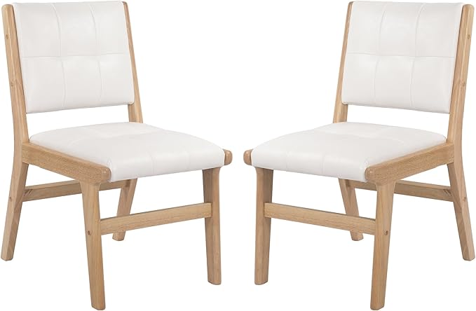 KCC Modern PU Leather Dining Chairs Set of 2, Upholstered Kitchen Chairs with Solid Wood Legs and Comfortable Seat for Dining Room/Lounge/Bedroom(White)