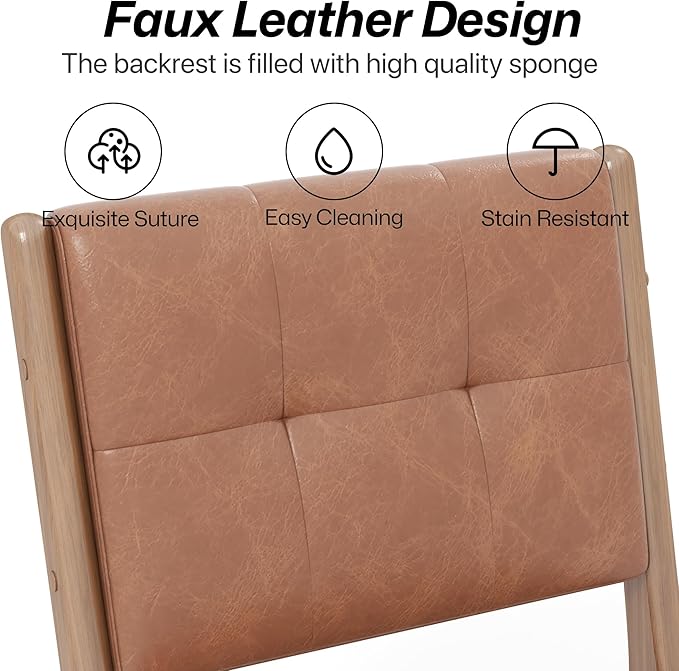 KCC Modern PU Leather Dining Chairs Set of 2, Upholstered Kitchen Chairs with Solid Wood Legs and Comfortable Seat for Dining Room/Lounge/Bedroom(Brown)