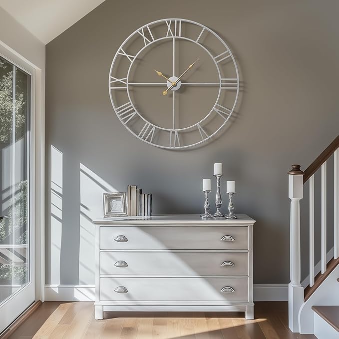 - Large Wall Clocks: This 36 inch silver wall clock features a hollowed-out design crafted from high-quality metal, combining vintage charm with durability.