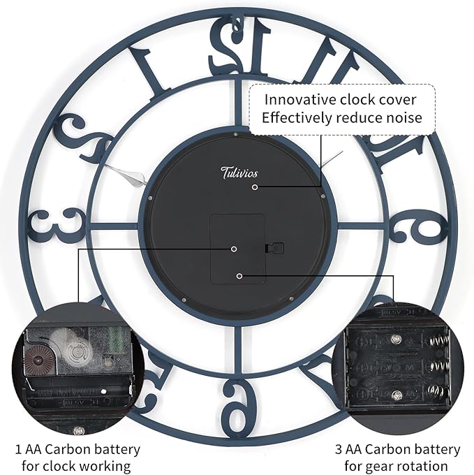 - Battery Powered: Unique wall clocks and gears work separately, the gears use 3 AA batteries, the pointers use 1 AA battery, it can be adjusted according to your wishes, make sure they all work properly. (Note: Batteries not provided)