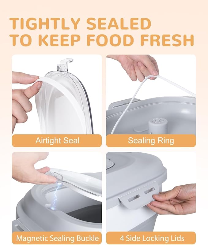 - SUPERIOR SEALING FOR FRESHNESS:The double airtight seals and 4 side locking lids offers excellent sealing ensures your pet's food stays fresh longer, free from moisture