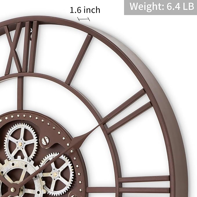 - Real Moving Gears: After the battery is powered, the gears rotate at the same time, emitting a soft tone that will not make people feel irritated. The gears are very sturdy and have a long service life. Inspired by the industrial steampunk movement, it is an eye-catching and unique antique large wall clock that will make visitors praise!