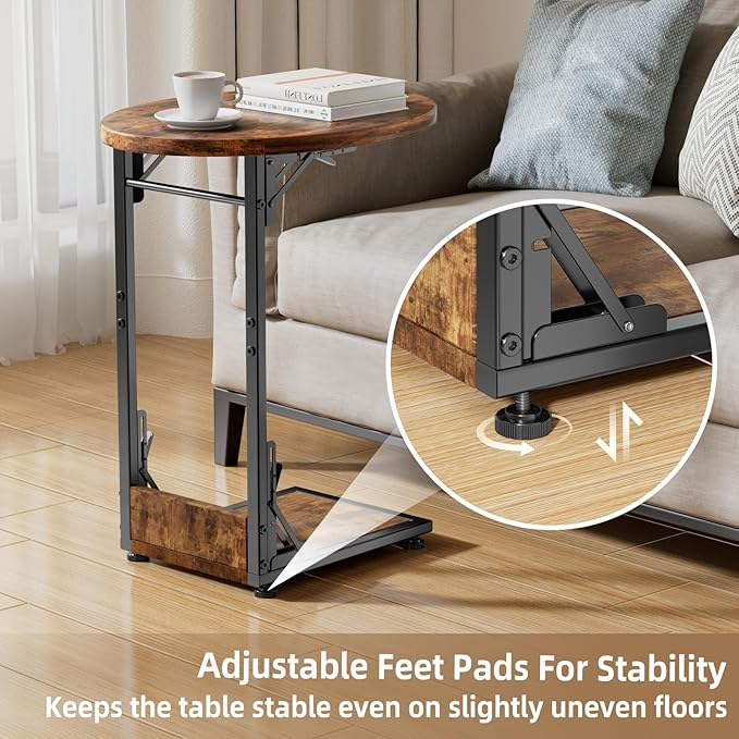 - 【Stability and Easy Installation】This living room side table features adjustable feet for stability on uneven floors. The C table's simple 5-step guide ensures quick, tool-free assembly, making it a breeze to set up, even for beginners