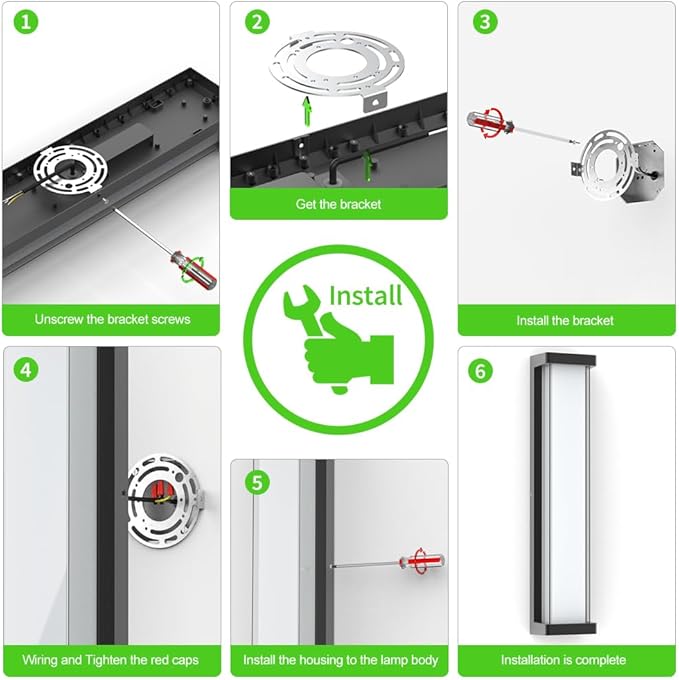 - 【Easy Installation Porch&Patio Lights】: Input Voltage :AC110-120V. Size: L 23.6" x W 4.92" x H 3.07", Wattage: 36W. Light source: 108p SMD2835 LED chips. With US standard bracket,just connect the wire and use the screw to install and fix the porch & patio lights(screws are provided). Contains all installed accessories.
