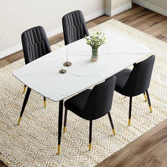 - 【Easy to Clean and Maintain】: Unlike marble tabletops, this kitchen table have larger gaps, the sintered stone surface is smooth and fine, preventing the growth of bad thing. The kitchen table chairs set of 4 can be easily cleaned with a simple wipe, keeping your dining area tidy.