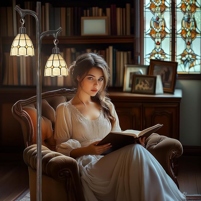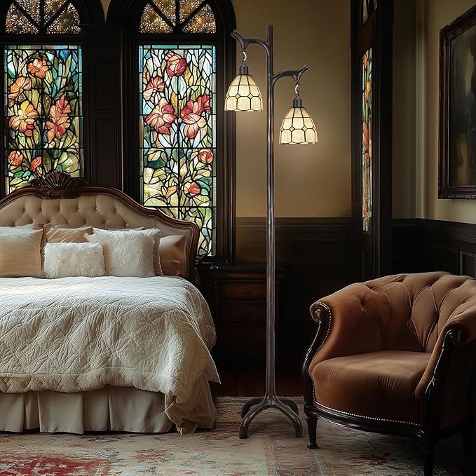 - TIFFANY STYLE FLOOR LAMP: With A Tiffany Retro Style Design, The Tree Trunk Artificial Wood Lamp Features A Resin Four Legged Base And Main Body, Equipped With Two High-End Tiffany Lamp Shades, Giving This Tree Floor Lamp An Elegant Style That Decorate Your Room Perfectly.