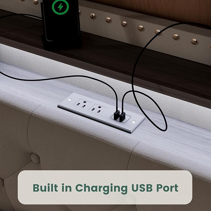 - [Convenient Charging Station]: The LED King size bed frame with its built-in outlet and two USB ports can make you easily charge the devices while in bed.
