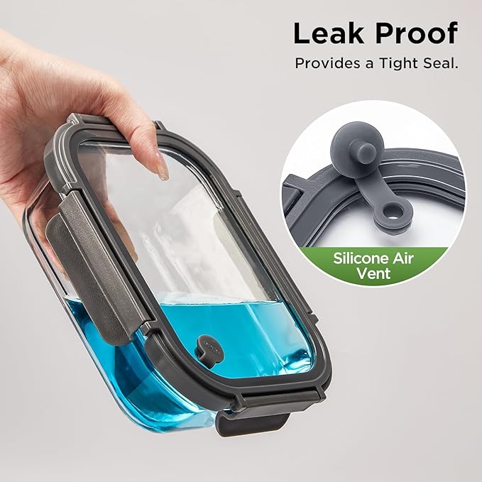 - Leak-Proof and Spill-Free: The removable silicone seals and upgraded snap-locking lids create an airtight and leak-proof barrier, making these glass containers perfect for carrying soups, sauces, and salads without worries of messy accidents.