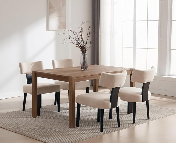 Modern Upholstered Dining Chairs Set of 6, Mid Back, Farmhouse Beige Dining Room & Kitchen Chairs, Black Wood Armless Side Chair for Living Room/Home Office/Reception