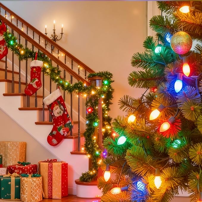 - đĄăWidely Usedă: C7 multicolor outdoor Christmas lights are easy to hang with small clips on each socket, making them ideal for decorating Christmas trees, garlands, mantels, roofs, gardens, patios, and more. With a rich, colorful glow, theyâre perfect for enhancing your home, backyard, or holiday party decor, creating a warm and festive atmosphere for every occasion!