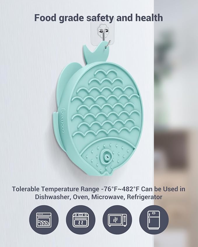Coomazy 2-in-1 Silicone Slow Feeder Dog Cat Bowls, Lick Mat Interactive Puzzle Toy for Pets Dry/Wet Food Training, Keeps Dogs Cats Busy, Prevents Puppy Kitty Overeating (Cyan, 1.2 Cup)