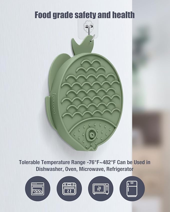 Coomazy 2-in-1 Silicone Slow Feeder Dog Cat Bowls, Lick Mat Interactive Puzzle Toy for Pets Dry/Wet Food Training, Keeps Dogs Cats Busy, Prevents Puppy Kitty Overeating (Avocado, 1.2 Cup)