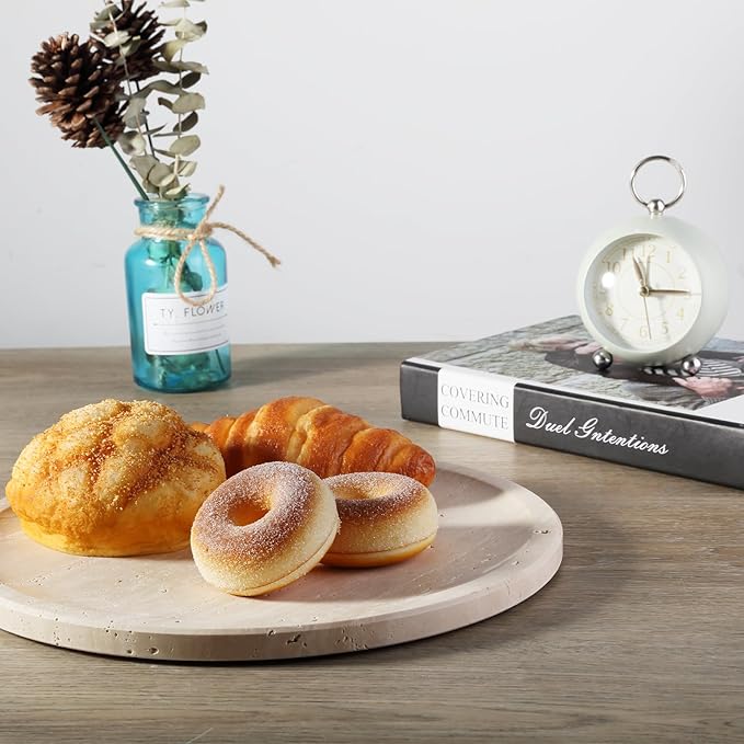 Travertine Tray, 11.8"x0.8" Round Serving Tray for Kitchen and Coffee Table, Bathroom Trays for Counter, Decorative Vanity Trays, Catchall Fruit and Snack, Light Beige Ottoman Tray