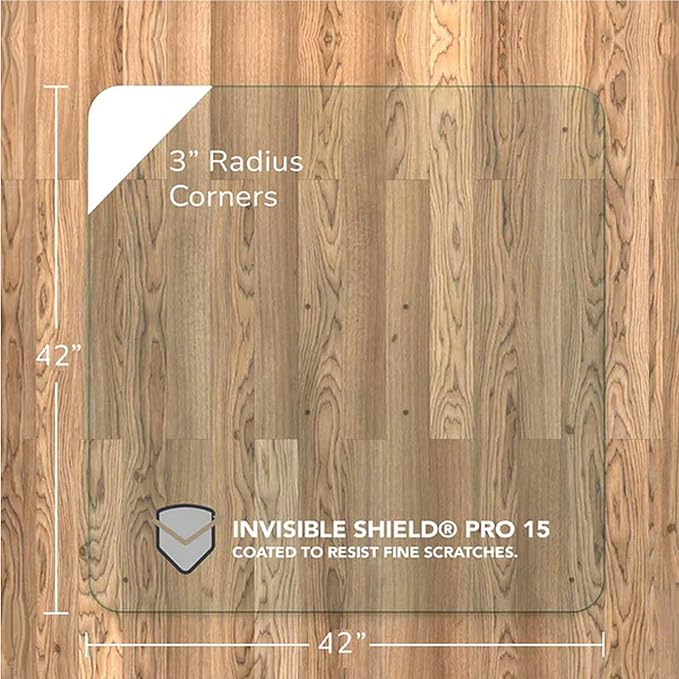 Vitrazza Glass Chair Mat 42” x 42” Superior ¼" thick, Chiaro Standard Clear, Certified Tempered Safety Glass, Delivers a Smooth Glide, Protects Carpet or Wood, Beautiful in Home or Office.