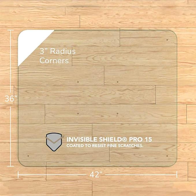 - BEAUTIFUL DESIGN: Each Vitrazza Glass Chair Mat features furniture-quality polished edges with a Mini-bevel, as well as FOUR 3" radius corners, adding elegance that complements even the most prestigious office spaces. Choose either Chiaro Standard Clear glass, or for a brighter, optically clear aesthetic choose Luminoso Low-iron Ultra Clear glass.