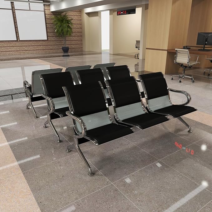 - [Stable & Durable] Constructed with Stainless Steel(1.5mm thickness perforated cold-rolled steel, powder coated, 1.2mm thickness cold-rolled steel, chromed) and high-quality PU leather, the waiting chair offers a stable and comfortable seating experience.