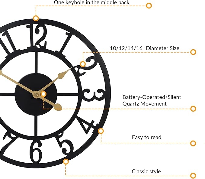 - 【EXTRA CLOCK HANDS and CUSTOMER SERVICE】 Package comes with 1 set extra antique black Clock Hand, non-traceable plastic hook and an instruction book. If you have any question about our product, contact us directly, we will give you a satisfied solution within 24h.
