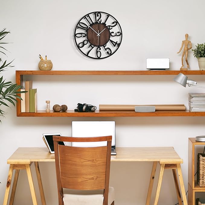 - 【DECORATIVE WALL CLOCK】 This clock has simple line and with a perfect balance of beauty between Modern & Industrial. It is suitable for any place like kitchen, dining room, living room, bedroom, office, school, above a fireplace, coffee house, restaurant and more. It is also a good gift idea for family and friends.