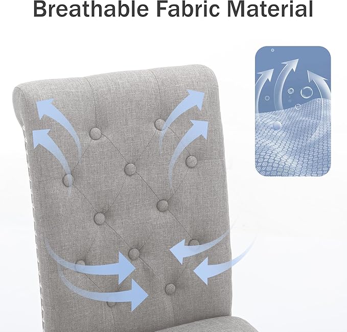 - 【High Quality Materials】This dining chair is made of breatherable, soft fabric give you comforatble touch. Sturdy engineering wood frame, and durable wood rubber legs, can be used for a long time, foot pads to prevent scraping your floor.