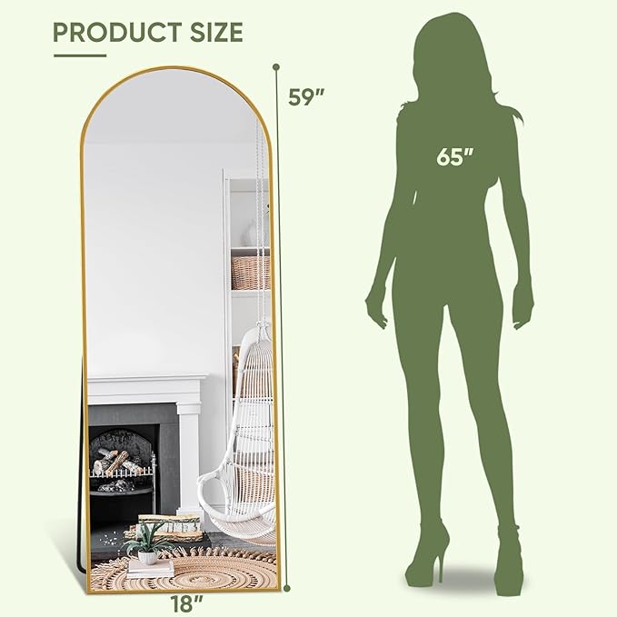 - 【Arched Design】The floor mirror features an arched top. The mirror full length with a stand is surrounded by aluminum alloy. The frame of the full-length wall mirror has a textured surface and is extremely thin and lightweight, enabling you to move it effortlessly. The floor-length mirror is highly aesthetic in any space and makes your room appear elegant.