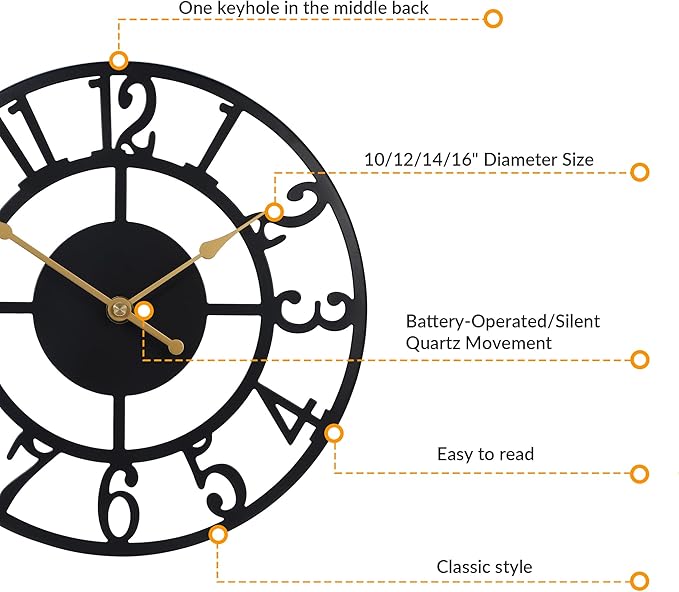 - 【EXTRA CLOCK HANDS and CUSTOMER SERVICE】 Package comes with 1 set extra antique black Clock Hand, non-traceable plastic hook and an instruction book. If you have any question about our product, contact us directly, we will give you a satisfied solution within 24h.