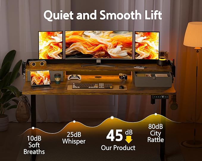 - Electric Lifting System: The sit to stand desk has advanced motor that can support height adjustment between 28''-47'' with low noise (< 50 dB) while running. The lifting speed is 20mm/s. Switch from sitting to standing in seconds!