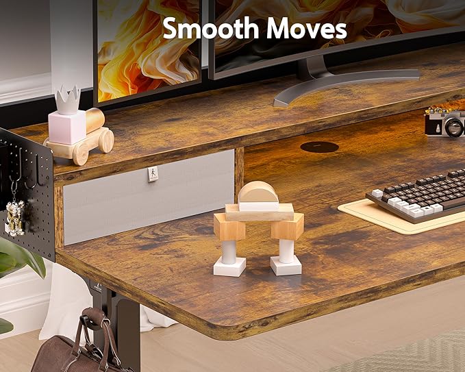 55x24 Inches Electric Standing Desk with 2 Drawers, Height Adjustable Stand up Desk for Home Office, Ergonomic Sit to Stand Table with Storage Shelf, DIY Board, Hooks, Rustic Brown