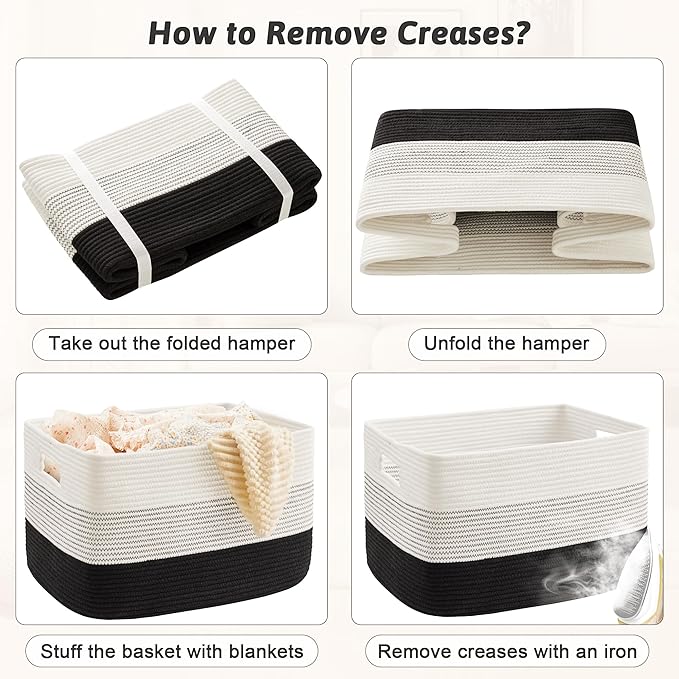 - 【Effortless Restoration】 Rectangular blanket baskets are more stable and easier to restore to their original shape after receiving a package. Simply fill the basket with pillows or blankets and iron repeatedly to speed up the gradual return of the basket to its original shape.