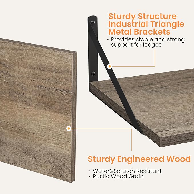 - [Discover More Organization Space] - Don't worry about cluttered desktops and floors! Why not try using the walls? The wonderful combination of smooth-surfaced metal brackets and engineered wood board texture decorates your home with a natural and rustic beauty! Great for organizing books, collectibles, plants, and trophies on the wall without occupying floor space.
