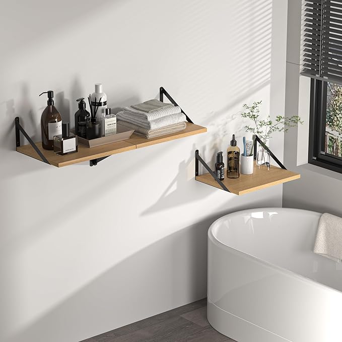 - [Large Capacity Floating Shelves] - Our wall shelves are 16" long x 12" deep, providing ample storage or display space for your kitchen, living room, bedroom, bathroom, laundry room, and more. With such a large space, you can place many items like books, collectibles, plants, crafts, photos, laundry detergent, etc. Our shelf can even be used as a bookshelf or a nightstand. Let our shelves decorate every corner of your home!