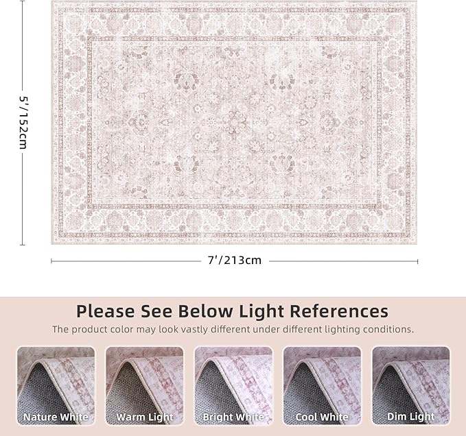 - [Washable & Easy to Clean]: Our light pink rugs are machine washable and easy to maintain. Quickly air-dry due to the thin pile design. Use a vacuum cleaner, or broom, or wipe several times per week or deep clean regularly on the situation. Product note: When you receive a new throw rug with a crease, you could try rolling it up the opposite way for two full days, then laying it flat on a clean floor.