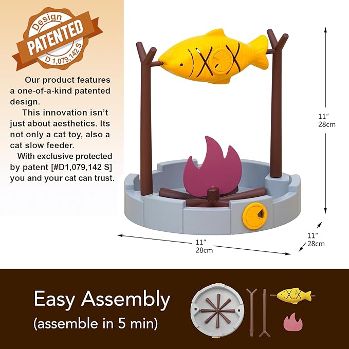- Features a rotating fish dispenser that allows you to control how big the dispensing hole is to fit your cat's treats/food.