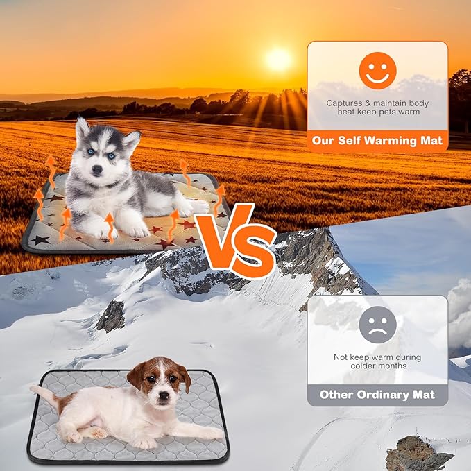 - Product Information: the package includes 4 packs of self warming cat beds with star pattern design, which can attract pets' attention easily; And the size of self heating cat pad is about 18 x 18 inches/ 45 x 45 cm, suitable for puppies, cats, kittens, rabbits, pregnant pets, newborn pets, arthritis pets and even small animals; Please measure your pet to ensure size before ordering