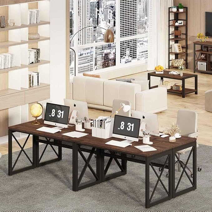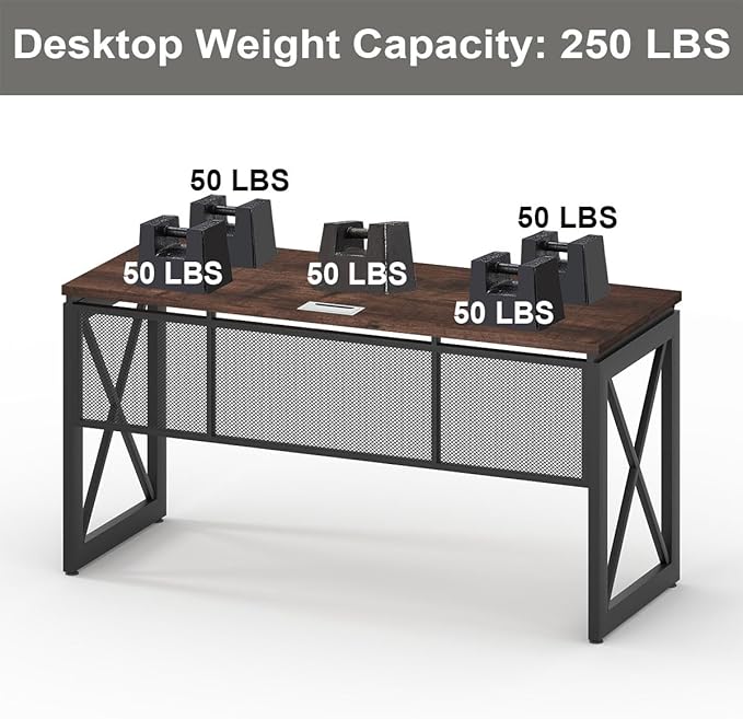 - Not Wobbles at All: Heavy duty metal x-shaped legs and support mesh frame on the back, add an extra support tube under thick desktop makes this industrial computer desk super strong and sturdy. Besides 4 pcs adjustable feet will strengthen the stability and keep balance. Weight Capacity of desktop is 250 LBS.