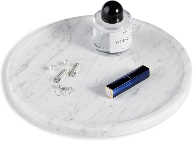 - STURDY AND MODERN: This decorative tray use high quality marble material and advanced craftsmanship, which is finely polished to ensure the excellent quality of each vanity tray. This round tray with natural material won't lose its original lustre, providing you with a long-lasting experience.