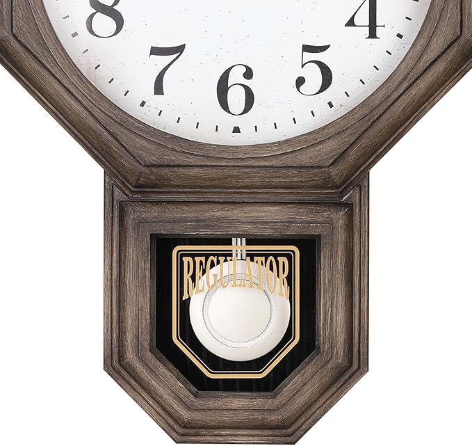 - 【Functional Decorative Pendulum Wall Clock】: Our modern farmhouse ABS plastic pendulum wall clock features a hand brushed grey oak finish, making it a perfect addition to any living room decor. This large pendulum wall clock combines classic charm with a contemporary aesthetic