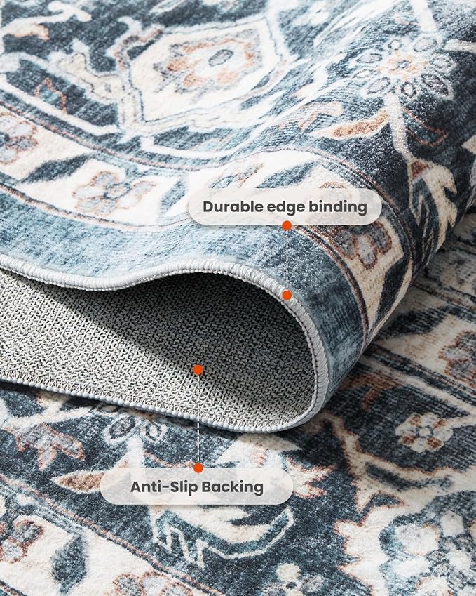 AMADA HOMEFURNISHING 8x10 Washable Area Rug, Low-Profile Large Area Rug with Non-Slip Backing & Durable Edge Binding, Vintage Large Rugs for Living Room, Bedroom, Dinning Room