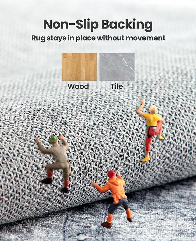 - Non-Slip Backing: Vintage area rug features a non-slip backing to keep it securely in place, even on smooth surfaces like tile or wood. With a rug that stays flat without shifting or moving, you can enjoy a stable flooring surface and peace of mind, perfect for busy families with kids or pets.