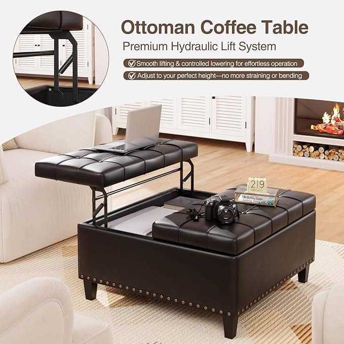 - Multifunction Ottoman Bench: This leather coffee table ottoman features a Lift-Top, 40 gallons of storage space that can be used as a toy box, multi-purpose coffee table, lounge footstool, additional stools