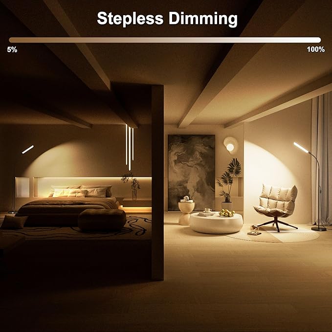 - 【 Stepless dimming & Color temperature 】Other floor lamp only has 3 color temperatures and 4 brightness levels, while our dimmable floor lamp can achieve stepless color temperature adjustment of 2700K-6500K and stepless dimming of 5% -100%. You can adjust the lighting according to your needs.