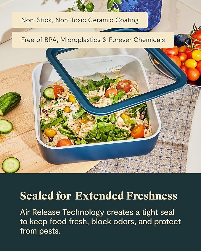 - KEEP YOUR FOOD FRESH: Look forward to leftovers with Caraway’s easy-to-store, non-toxic food storage containers. These 10 cup glass containers were designed to be displayed and keeps your food fresh & organized.