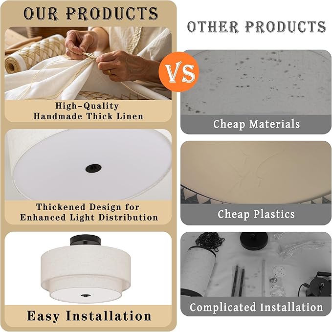 - [Suitable for any scene]: This fabric light is great for hallways, entrances, foyers, lobbies, corridors, bedrooms, living rooms, dining rooms, kitchens and more.
