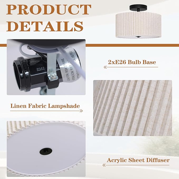 - [Suitable for any scene]: This fabric light is great for hallways, entrances, foyers, lobbies, corridors, bedrooms, living rooms, dining rooms, kitchens and more.