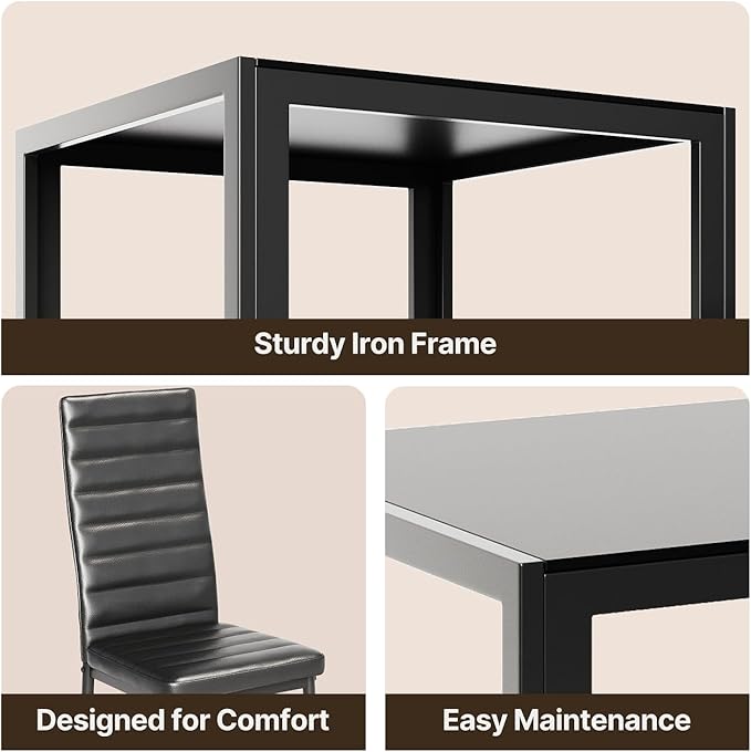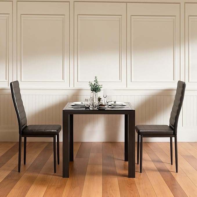 - Well-Designed Seating: The 2-person dining set includes a dining table and 2 cushioned chairs with a streamlined backrest that fits the natural curve of your spine. The seat is padded with soft foam and covered with PU leather, providing a comfortable and supportive experience so you can enjoy every meal.
